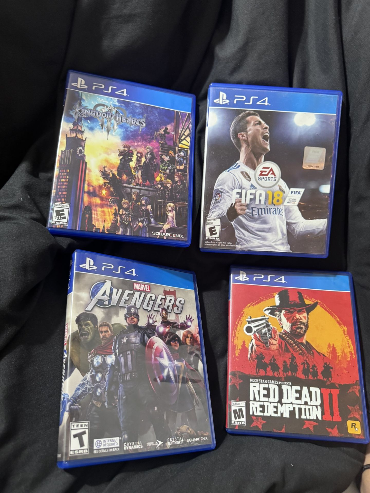 kingdom hearts lll 8$ Fifa 18 5$ marvel’s avengers 10$ red dead redemption 15$ all for 40
