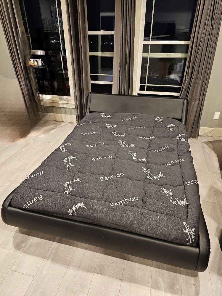 Full size platform bed. Faux leather. Low to the ground. Son outgrew and moved into a larger bed. 125$ for all or offer. Can help load it into your truck or van! Fun, modern bed. If it's up, it's available. 125$ offer