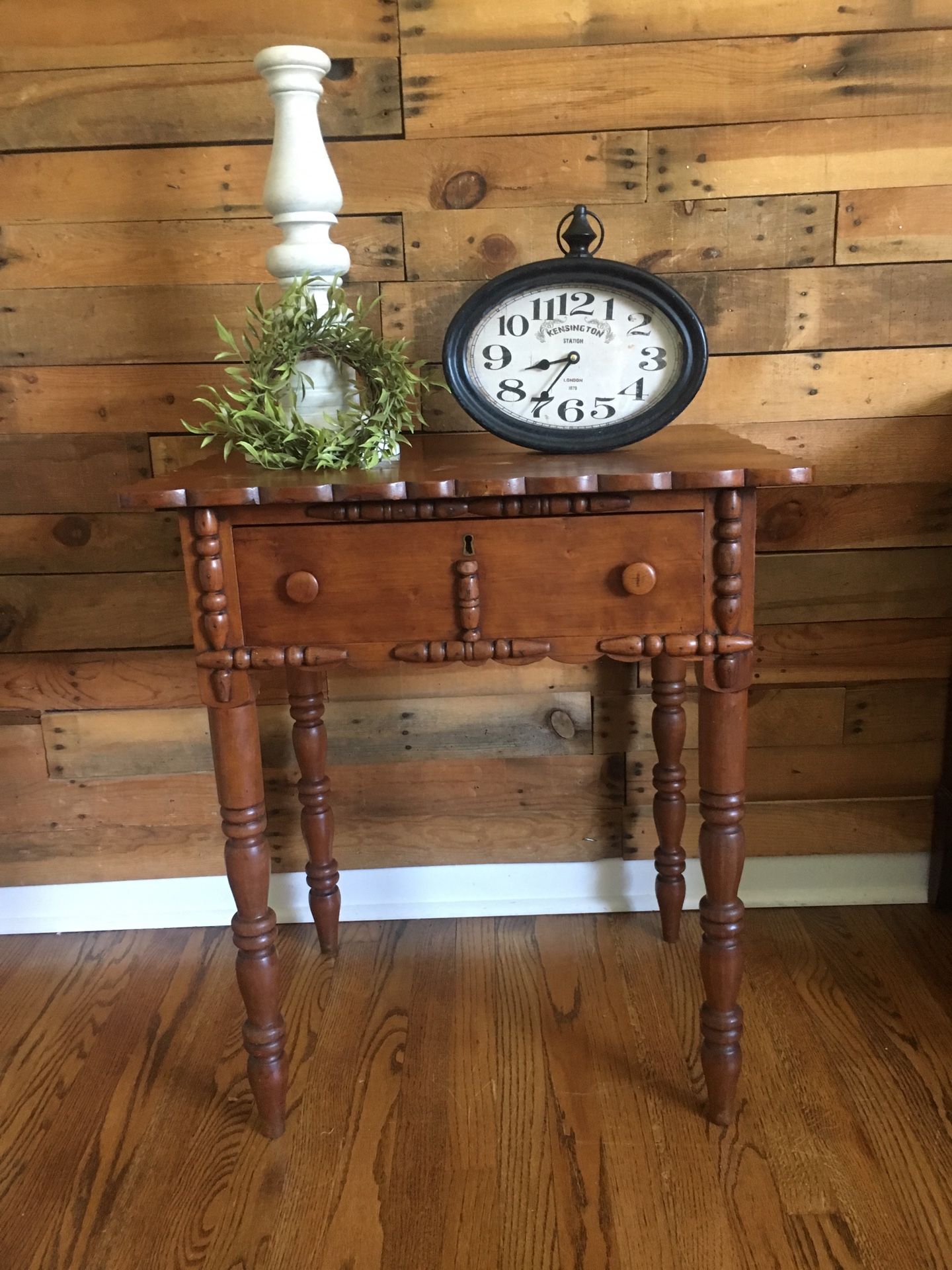 Primitive style accent table- excellent as is. One drawer. Original condition. Measurements are 25 3/8ths wide, 20 inches deep, 29 tall. Priced at $119 Check out our page for more listings {url removed} Farmhouse shabby chic antiques rustic vintage primitive