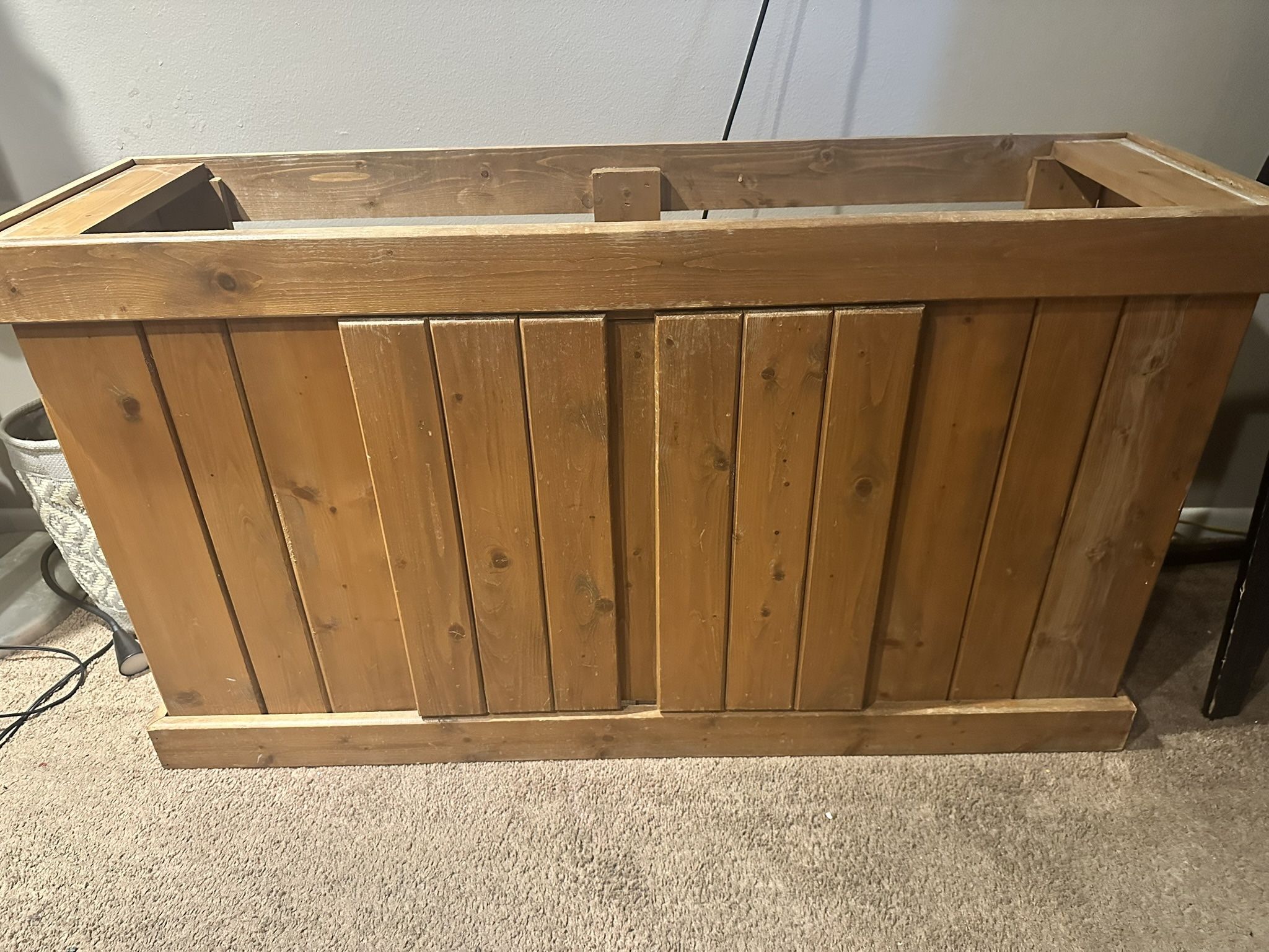 Gently used, selling because we needed a bigger tank. The tank half has been sold. Only wooden stand available . Pick up only Fits a 55-gallon around 48 inches long by 13 inches wide by 21 inches high.