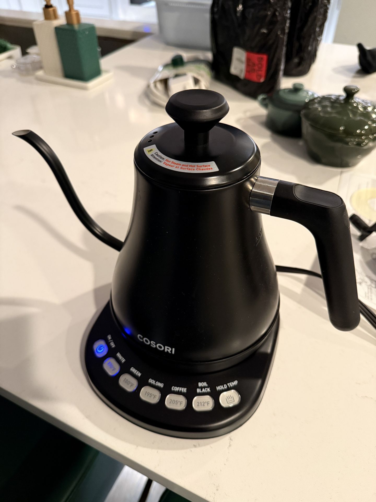 COSORI Electric Gooseneck Kettle with 5 Temperature Control Presets, Pour Over Kettle for Coffee & Tea, Hot Water Boiler, 100% Stainless Steel Inner Lid & Bottom, 1200W/0.8L Used a few times. In perfect condition.