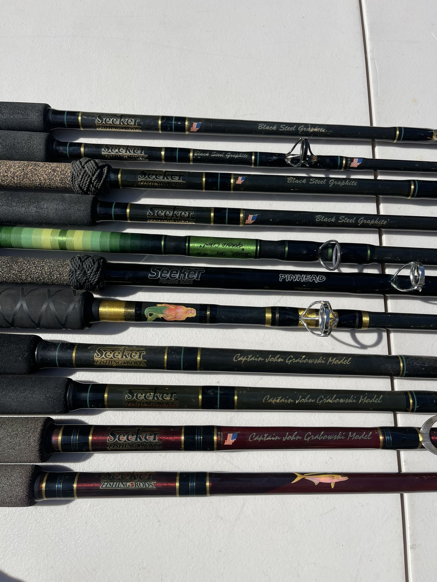 Super seeker SS670-7’ 25-40 SOLD Super seeker SS6470-7’ Captain John Grabowski model 30-50 $350 Seeker Captain John Grabowski model G6470-7’ 30-50 $250 Seeker black steel G6470H-7’ 40-60 $225 Seeker CJBF65H 30-80 $300 Seeker pinhead 1580-8’ CT 15-40 $260 Seeker 809 15-30 $250 Seeker black steel G970-7’ $225 Seeker black steel G270H-8 15-40 $250 Seeker black steel G660H -6’ 30-80 $250 Seeker black steel G970-7’ 15-40 $225 Ignore; Fishing, Fishing Tackle, Fishing Rod, Fishing Reel, Fishing Gear, Fishing Lures, Fishing Repair, Fishing Combo, Fishing Rod Blank, Fishing Line, Fishing Rod Custom, Fishing Guides, Fishing Tip, Spinning Rod, Spinning Reel, Baitcaster, Baitcaster Rod, Okuma, Penn, Stik, Shimano, Penn, Daiwa, Kencor, Seeker, Avet, Seigler, Trolling Rod, Trolling Lure, Trolling Reel, Two Speed Reel, Jigging Reel, Fenwick, Calstar, Roddy, Jig Stick, Shakespeare, Berkeley, Pfluegers, Rail Rod, Winn, Fuji, Custom Rod, Fishing Weights, Lews, Abu Garcia, Zebco, Truline, Phenix, Swimbaits, Conventional Rod, Conventional Reel, Newell, Fin-Nor, Jigging Rod, Live Liner Reel, Kastking, Yo-Zuri, Zoom, Gulp, Bass Lures, Jigs, Tackle Box, Yum, Rainshadow, phenix avet accurate newel gloomis tady salas kickers turners Shimano Gulp, Bass Lures, Jigs, Tackle Box, Yum, Rainshadow, phenix avet accurate newel gloomis tady salas kickers turners shimano daiwa okuma fishing reel rod torium makaira trinidad proteus tackle line braid lures jigs saltwater saltist kastking baitcaster freshwater bass spinning spinner jerkbait crankbait senko worms catfish dough trout largemouth small mouth tuna yellow tail barracuda flyline hooks sinkers mono boat Catalina clemente island terminal tackle Rigs hooks weights torpedoes united Avet Seeker Calstar Rainshadow Composites bait jig Daiwa Accurate Penn Trinidad Torium Newell Okuma Powerpro Rapala Talica Tranx fluorocarbon Phenix Shimano Loomis Gamakatsu Lamiglas Abu Garcia Axis Talica Okuma Tiburon owner ringed hooks seagaur power bait gulp spro yo-zuri