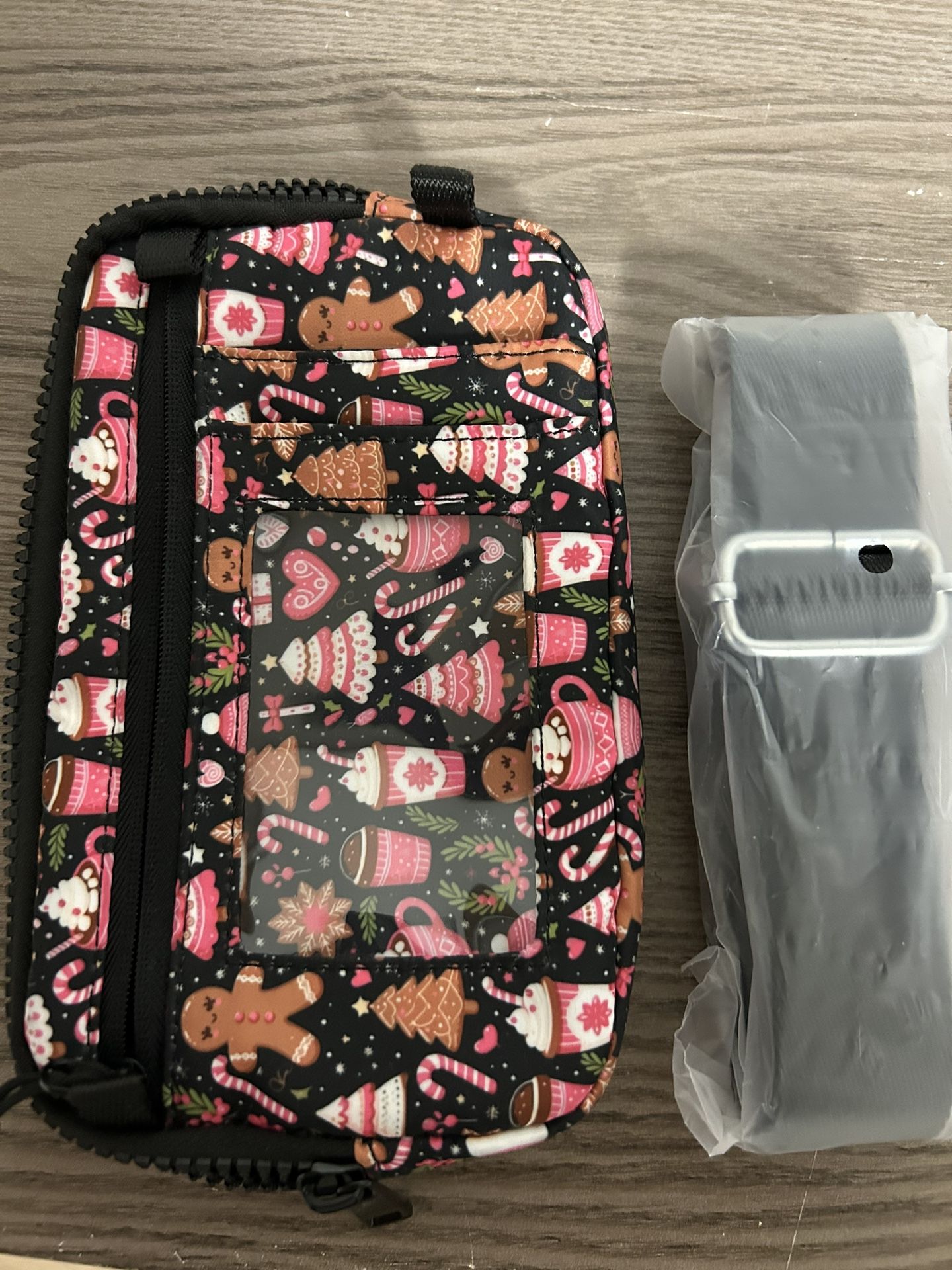 Two purses. One white color, Over the shoulder day bag with 4 different pockets. The strap can be tight or loose. One black color with pink Xmas print, The strap is removable-can be tight or loose. Xmas print bag can also be used as a day bag, and as an everyday wallet. Asking $15.00 for the white bag. Asking $15.00 for the pink Xmas bag. Both $30.00 Will ship Can meet Any questions please feel free to ask.