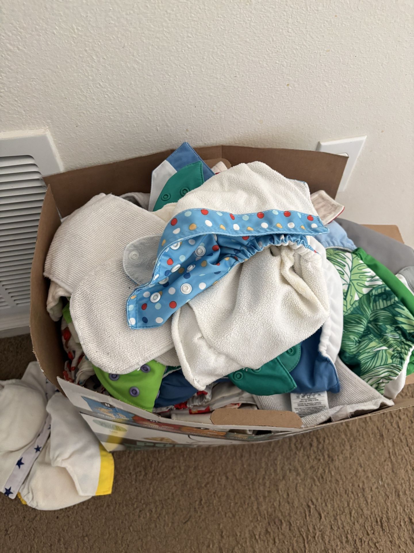Cloth diapers, lightly used, but clean and have plenty of life left. Mix of sizes and brands, inserts included.