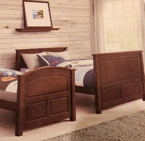 Two matching full size beds Bayside Furniture brand Solid wood, espresso color Excellent quality and condition One used less than a year One new $700 for both or $400 for one