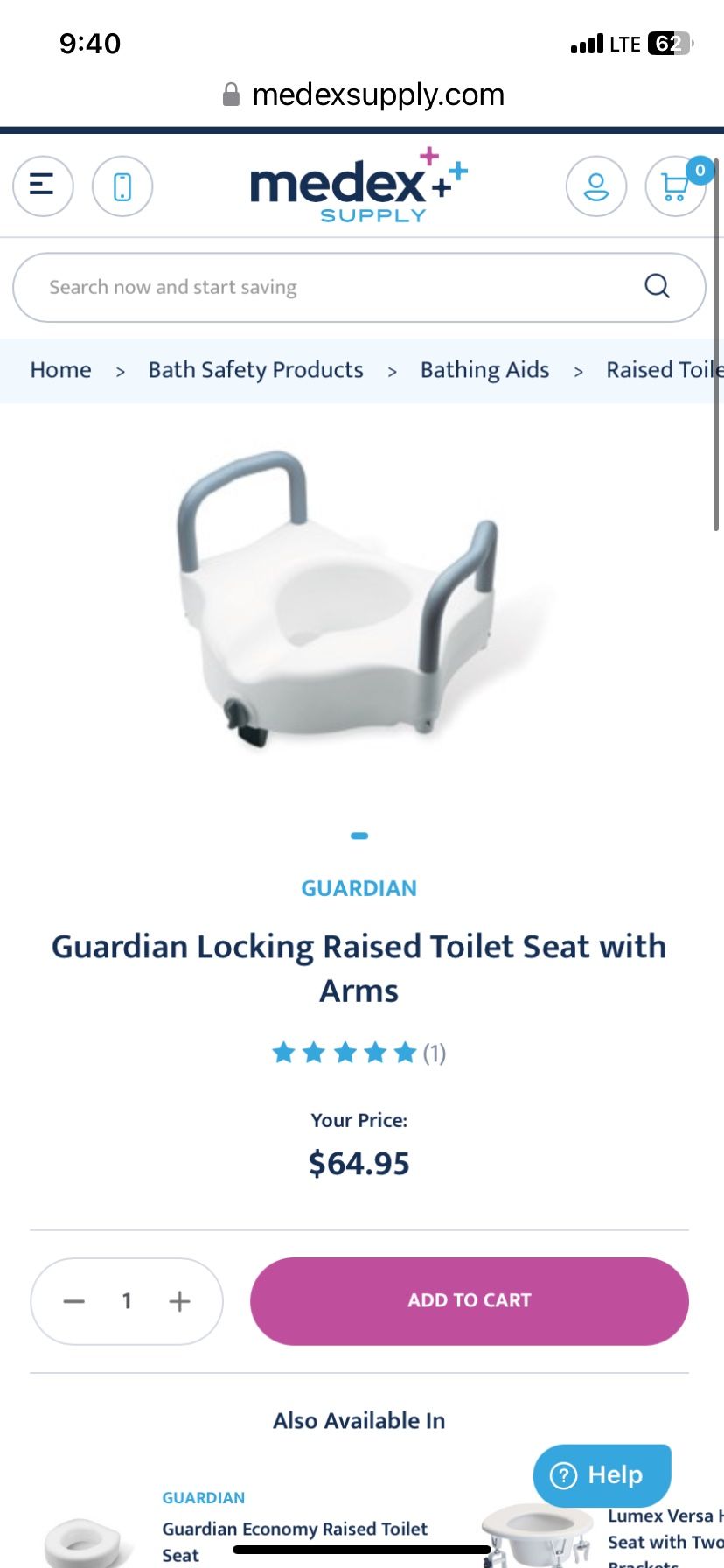 Guardian Locking Raised Toilet Seat with Arms New in Box