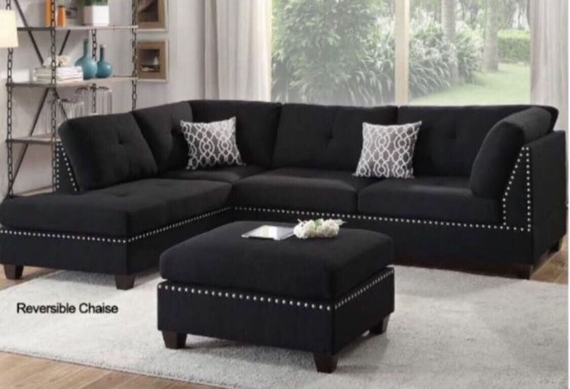 New Black Or Gray Sectional And Ottoman Sofa Couch