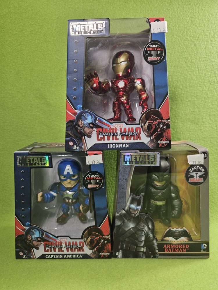 Diecast Metal Superheros: Iron Man + Batman & Captain America Bundle