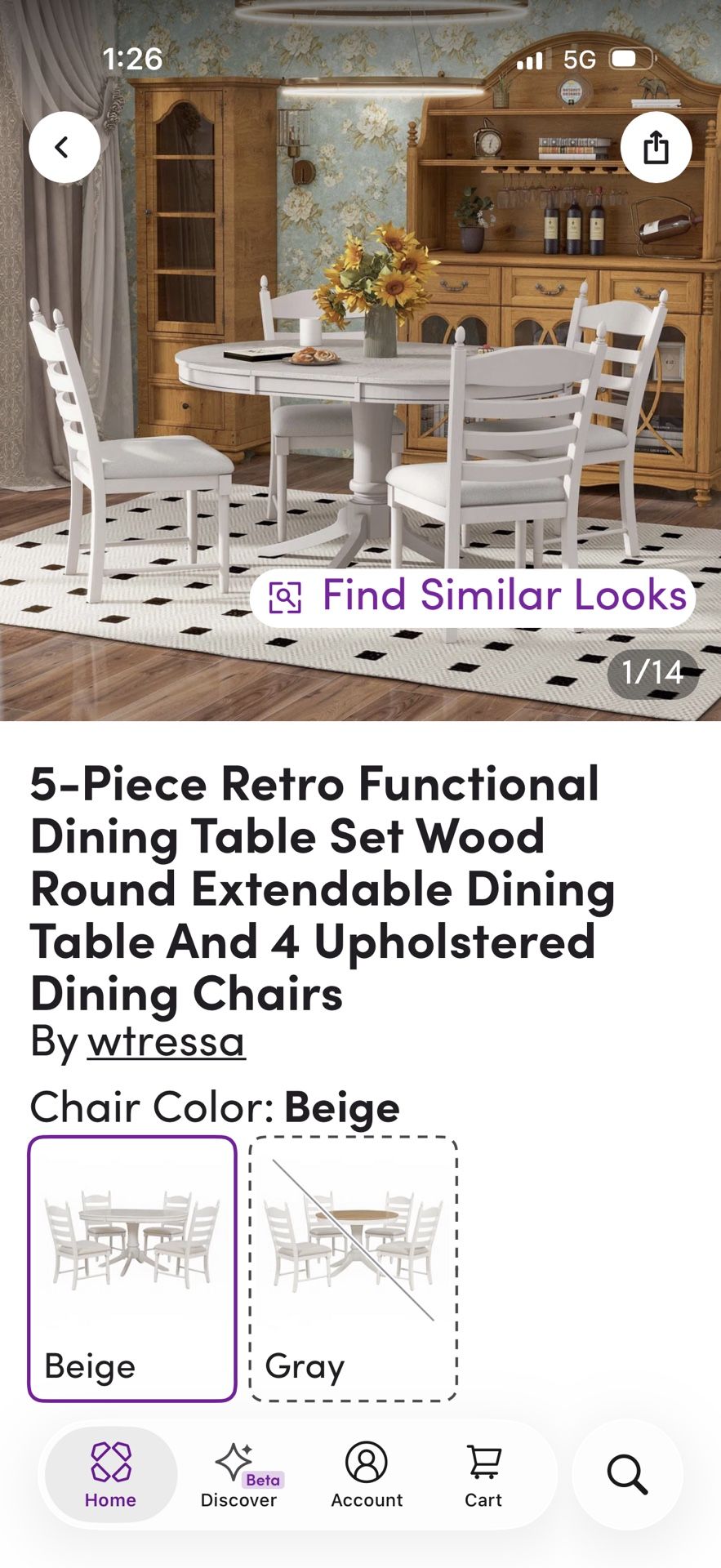 This set is brand new still in the boxes this is why Photos are from the Wayfair Sight. The color in the photos says beige but it’s actually antique white. Chairs are upholstered. Dimensions are listed in photos. I paid $700 w/o tax and am asking $450 OBO. My loss your gain. It just won’t work for me in the space I have. You will need a truck or large van for pick up and help loading.