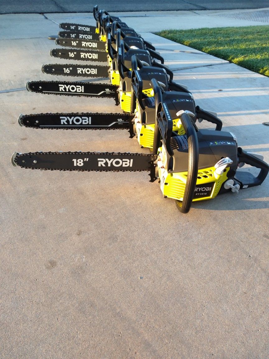 It's time to chop wood or whatever you need to with these awesome Ryobi chainsaws. These won't last long, get here now! 14" $100, $200 in the store 16" $120, $220 in the store 18" $140, $260 in the store