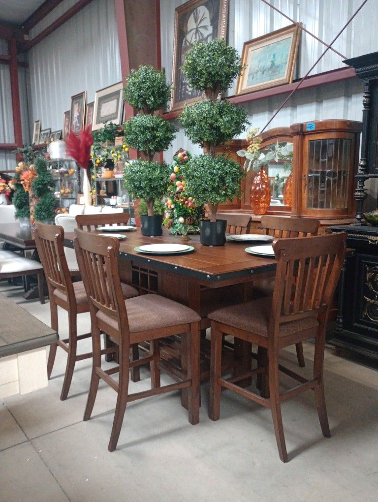 Sel storing leaf, dovetail drawers, ball bearing glides, dark bronze knobs, table base with wine rack, drawers and shelves. My prices are truly UNBEATABLE guaranteed and proven!! We accept all payment methods and offer delivery service as well as easy FINANCING Hacemos entregas a domicilio y finánciamento facil