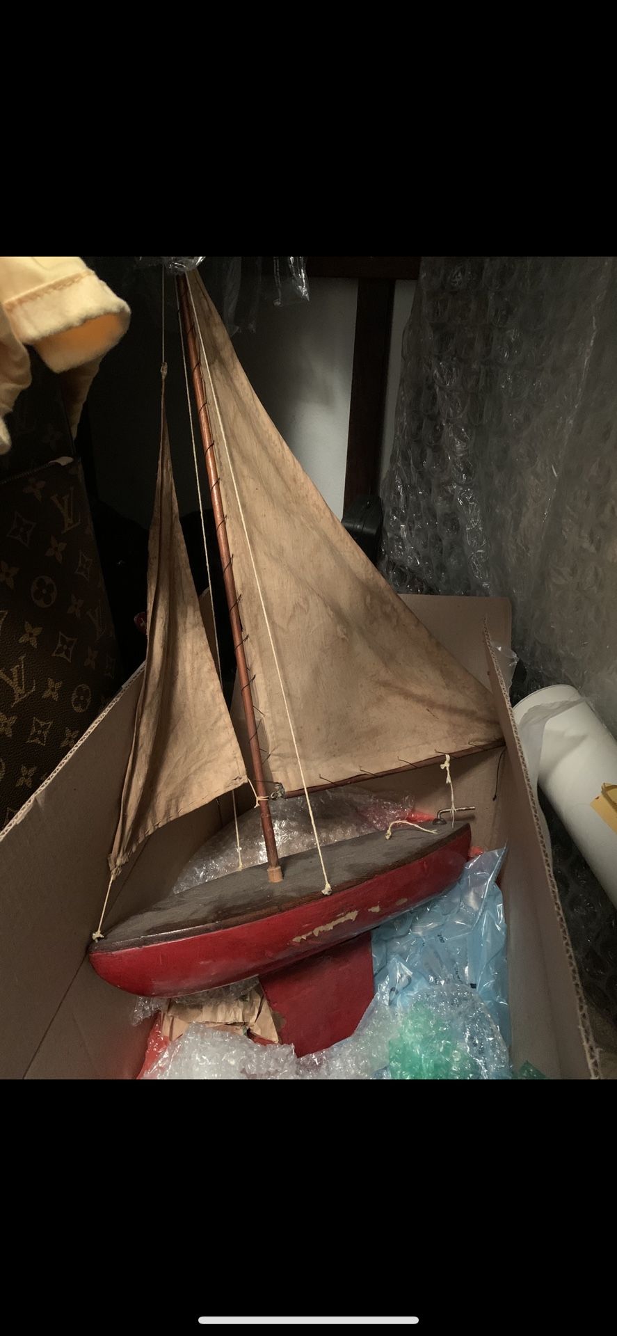 Early Antique Wooden Pond / Sail Boat With Weight for bottom to balance boat - Complete Shows some wear here and there as it should Early 1900s Pickup in Inverness Florida 34450