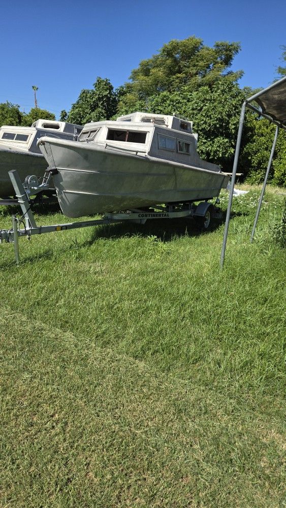 This is a 1959 sportcraft, cabin cruiser. It is 18 feet long. It is all aluminum, there is no motor It needs lots of work, but would be the coolest boat on the lake. The trailer is a two thousand twenty three