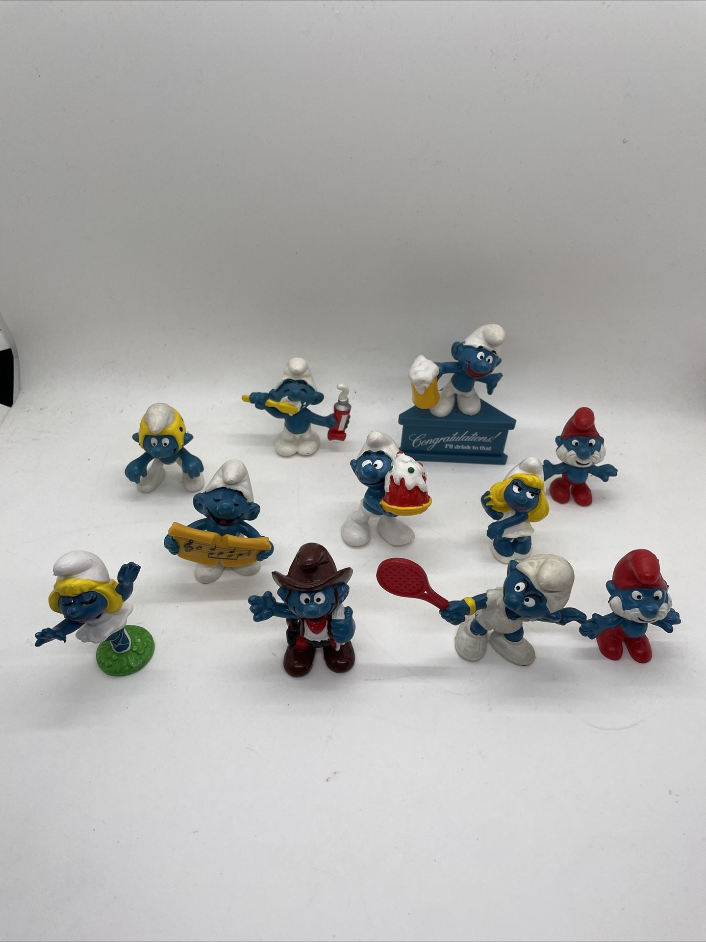 Nice condition, they could use a cleaning, but overall very good. Some wear, paint loss and marks throughout, please see photos. We also have other smurfs for sale.