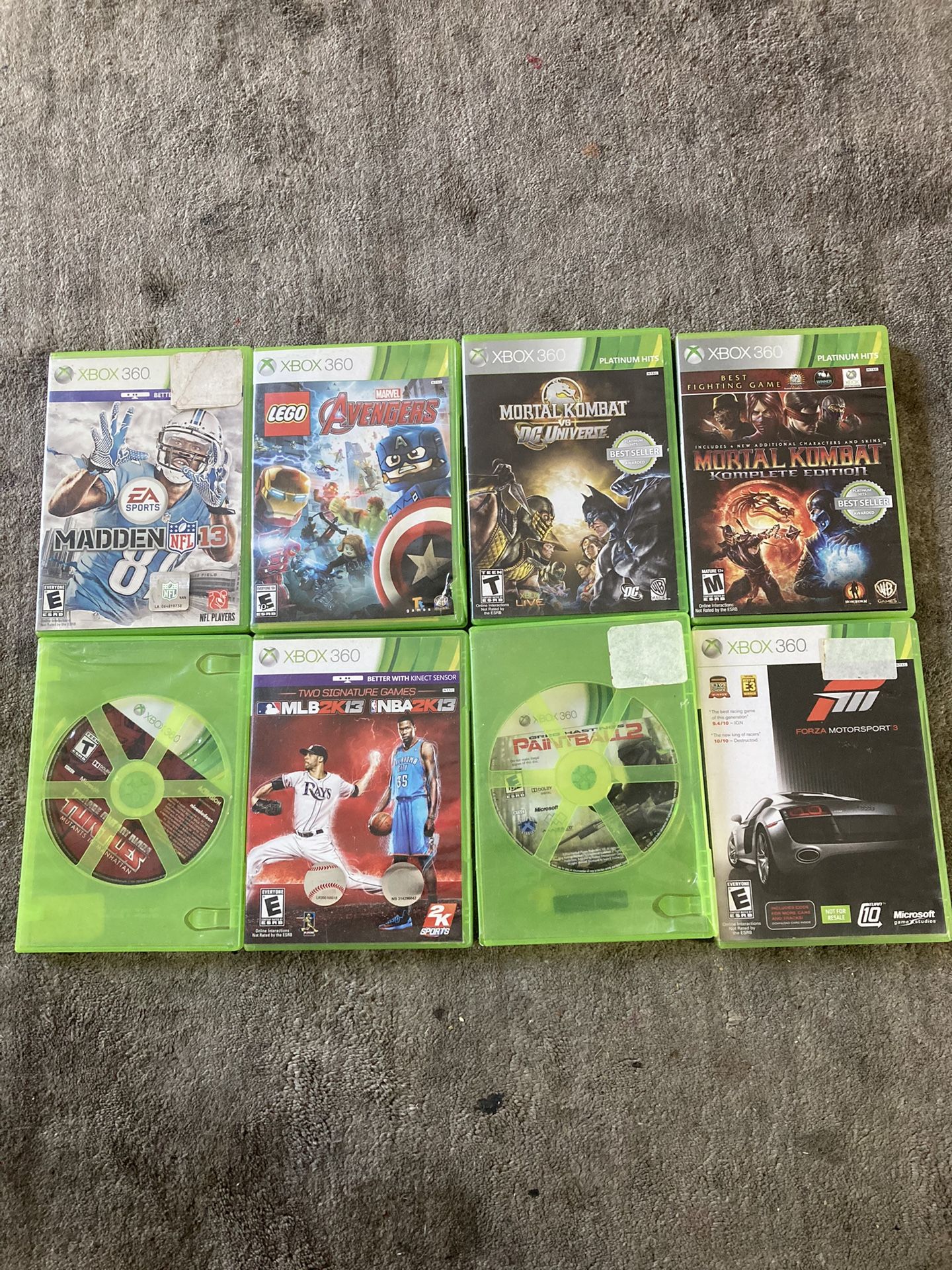 They all work $10-mortal kombat, Avengers $5-paintball, forza, nba/mlb, teenage mutant ninja turtles