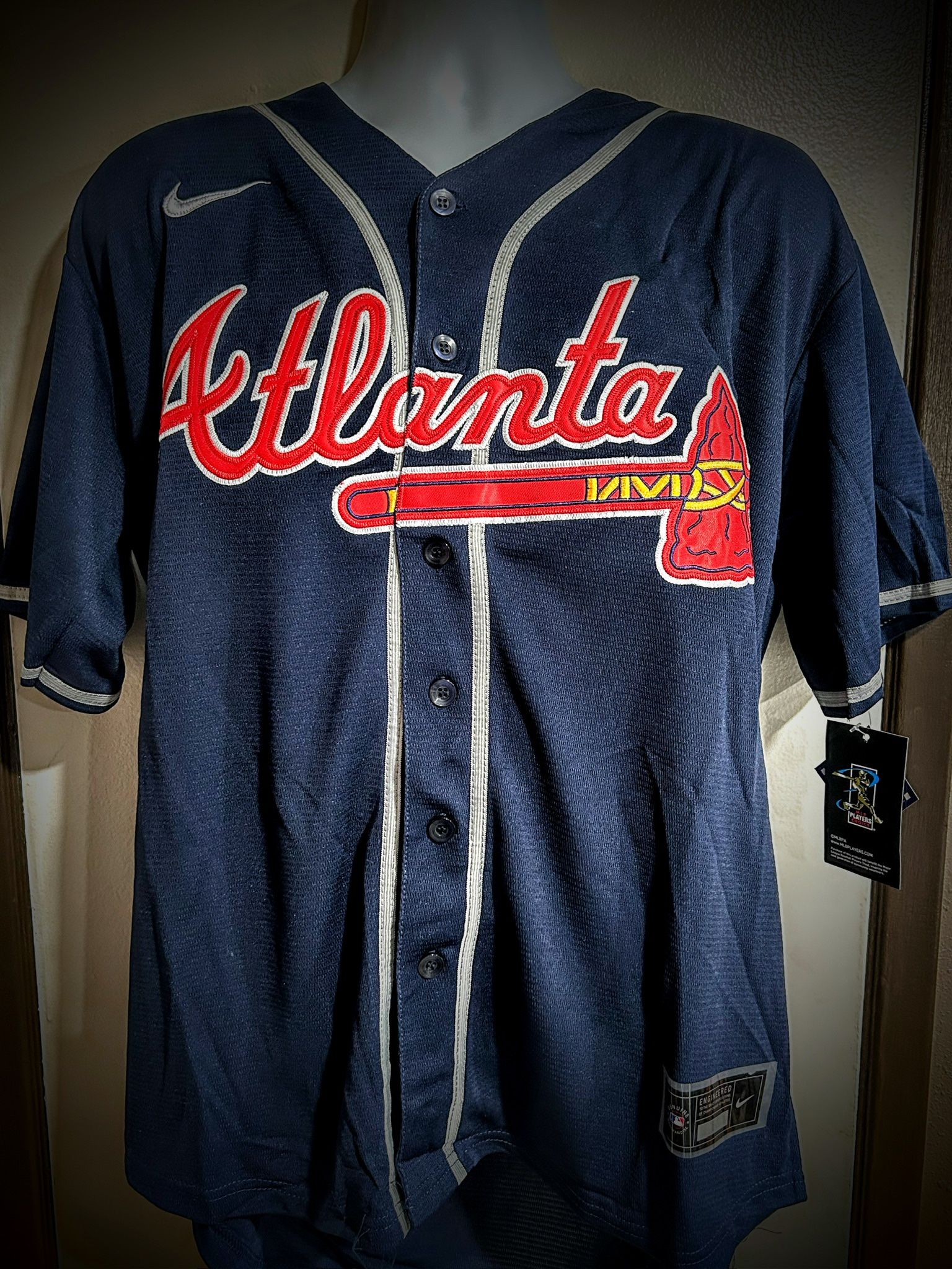 Atlanta Braves #44 Hank Aaron Retro MLB Baseball Jersey. Large available ATL, Atlanta, Braves, Baseball, MLB, Throwback, Jersey, Retro, Hotlanta, Fashion, Cooperstown, Hank Aaron.