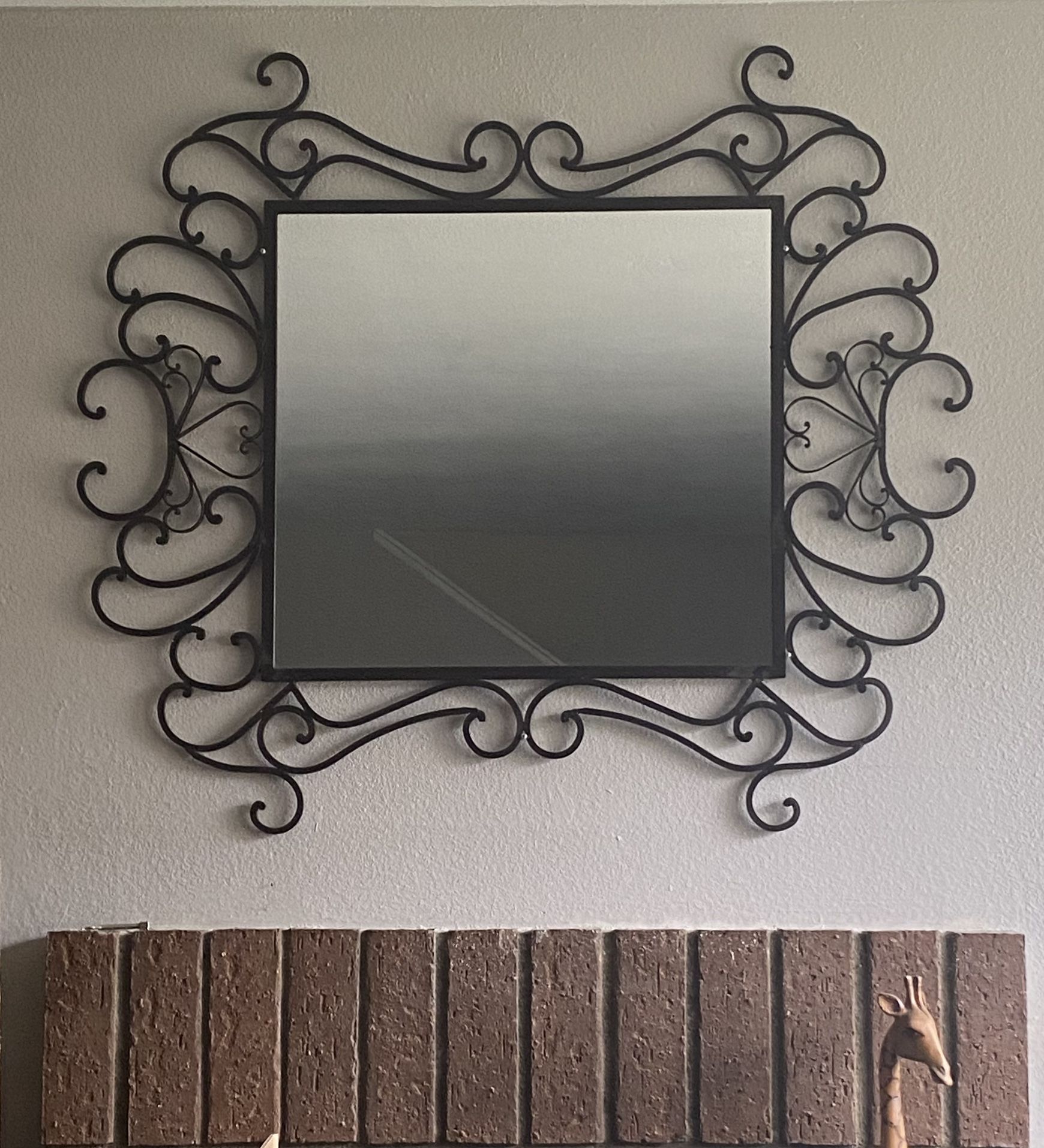 Selling set of Wrought Iron Mirror and Half Dome Stone Top Entry Table in great conditions. Mirror dimensions are: 53” length x 46” height Stone Table Top dimensions are: 36” length x 16” width Overall table dimensions are: 36” length x 17.75” width x 31.75” height