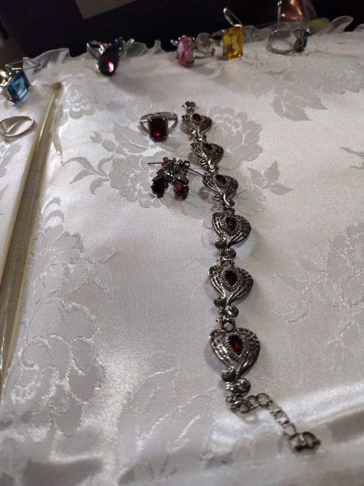 RED COLLECTION JEWELRY "" SET EARRINGS, BRACELET, AND RING""