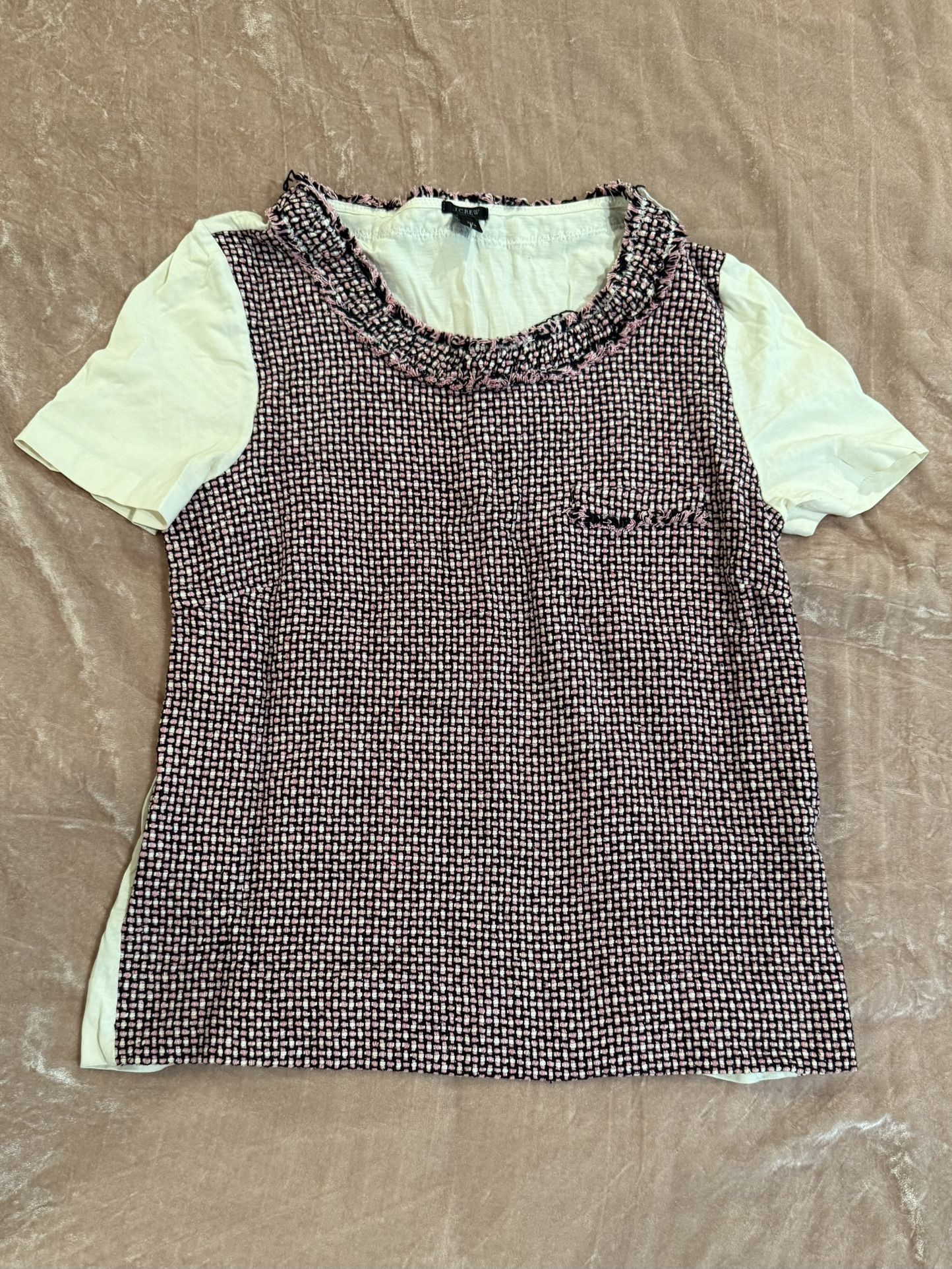 J Crew Silk Tweed Pink Black and White Top