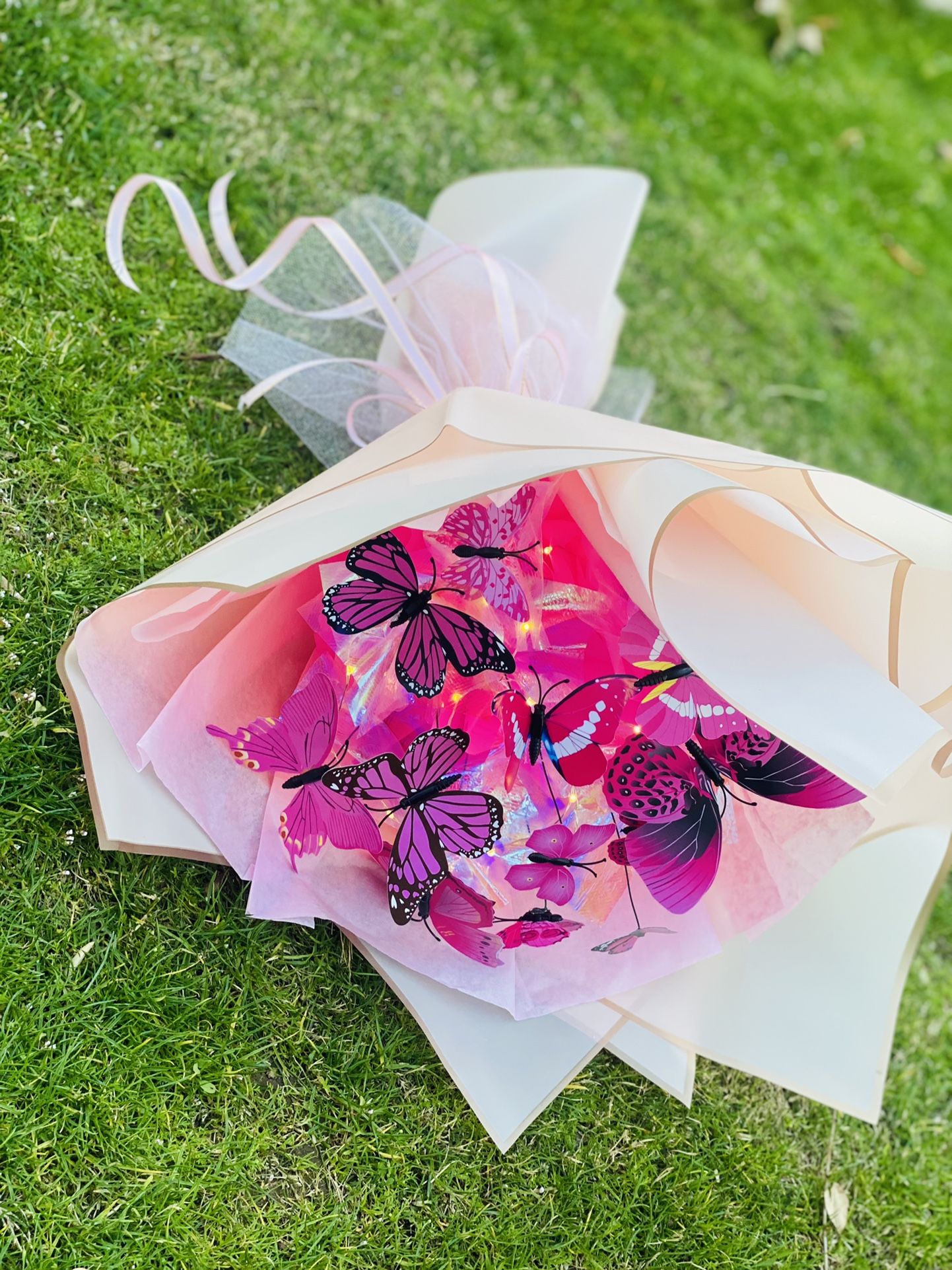 Ramos vitales de tik tok Ramos de san Valentín Ramos de mariposas con luces Tiktok viral Bouquet butterfly 45 Dlls bouquet includes 12 butterflies like the one on the picture with led lights (I have warm toned lights and also have blinking colorful ones your choice) Todos los colores