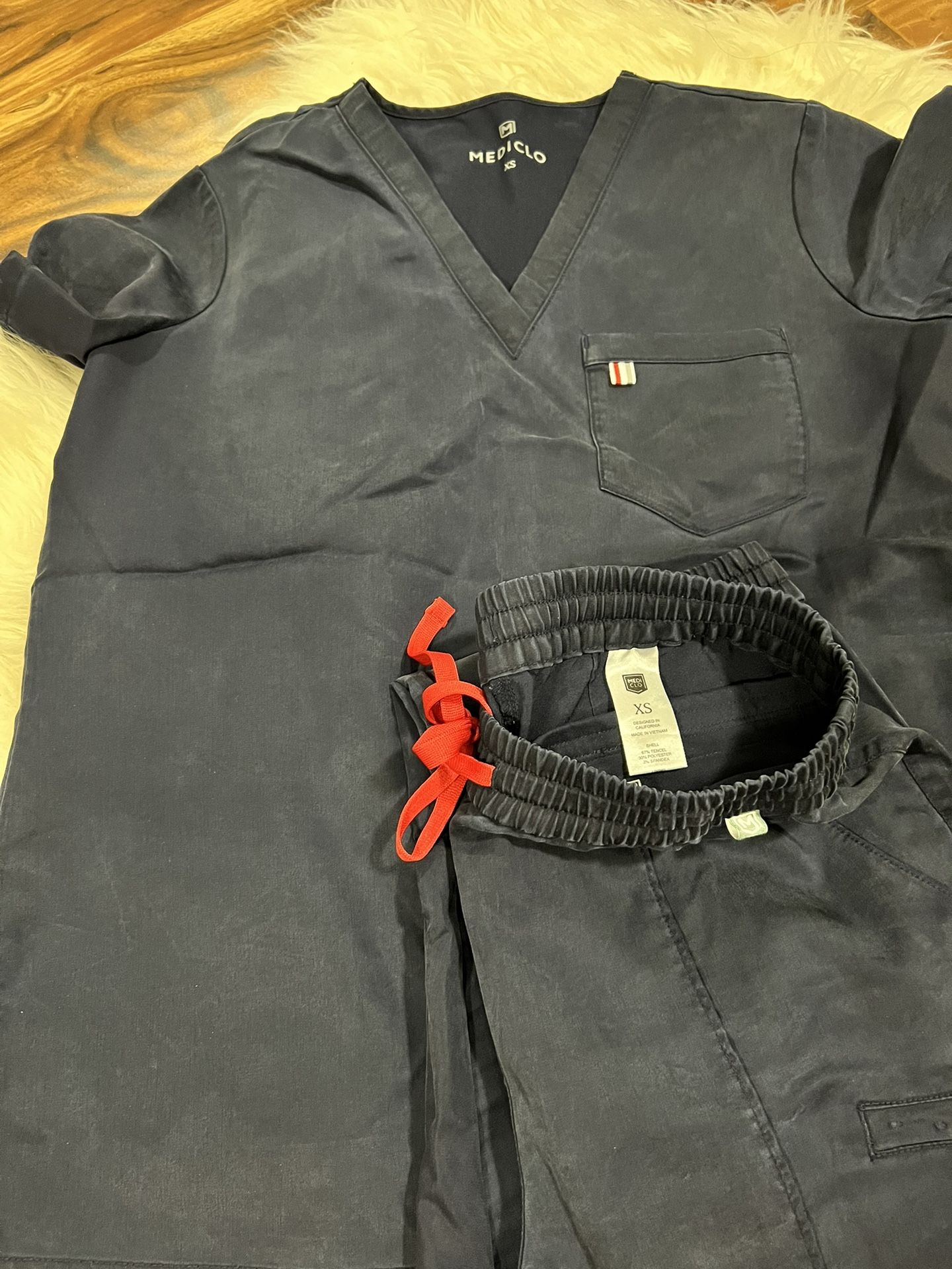 Top: xs Bottom: xs. Wore it only handful of times. Material is silky like.