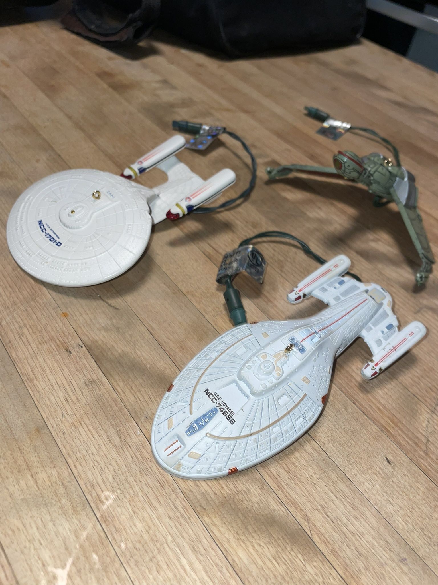 Enterprise D Voyager Klingon Bird of Prey ship All light up when connected to Christmas lights string Set of 3 with no boxes