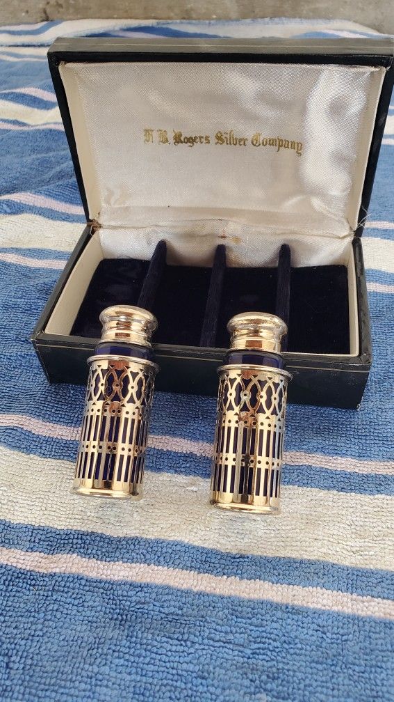 F.B. Roger's Silver Company Sterling Silver and Blue Glass Salt and Pepper shakers. $8