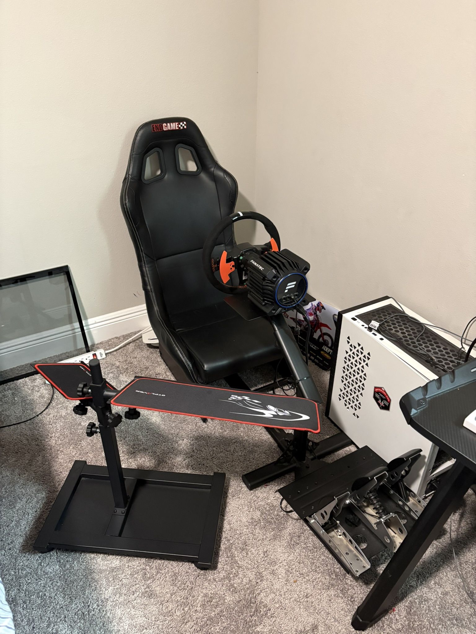 $1550 worth of stuff pc not included Setup I used to use with I racing and other games, good condition everything works flawlessly i just don’t use it much anymore 1000 obo NO TRADES -CSL Elite Wrc steering wheel - DD pro wheel base 8nm -CSL pedals LC - Endgame seat - Keyboard and mouse stand
