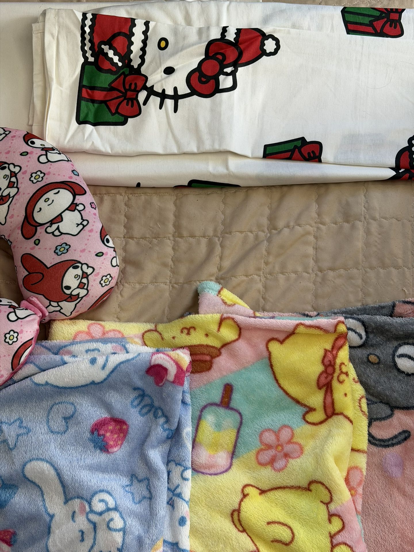 $40 for all $25 for curtain $5 blankets each $10 neck pillow