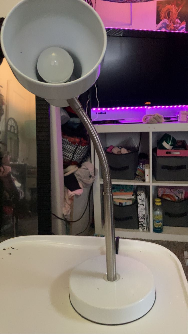 white lamp with led lightbulb