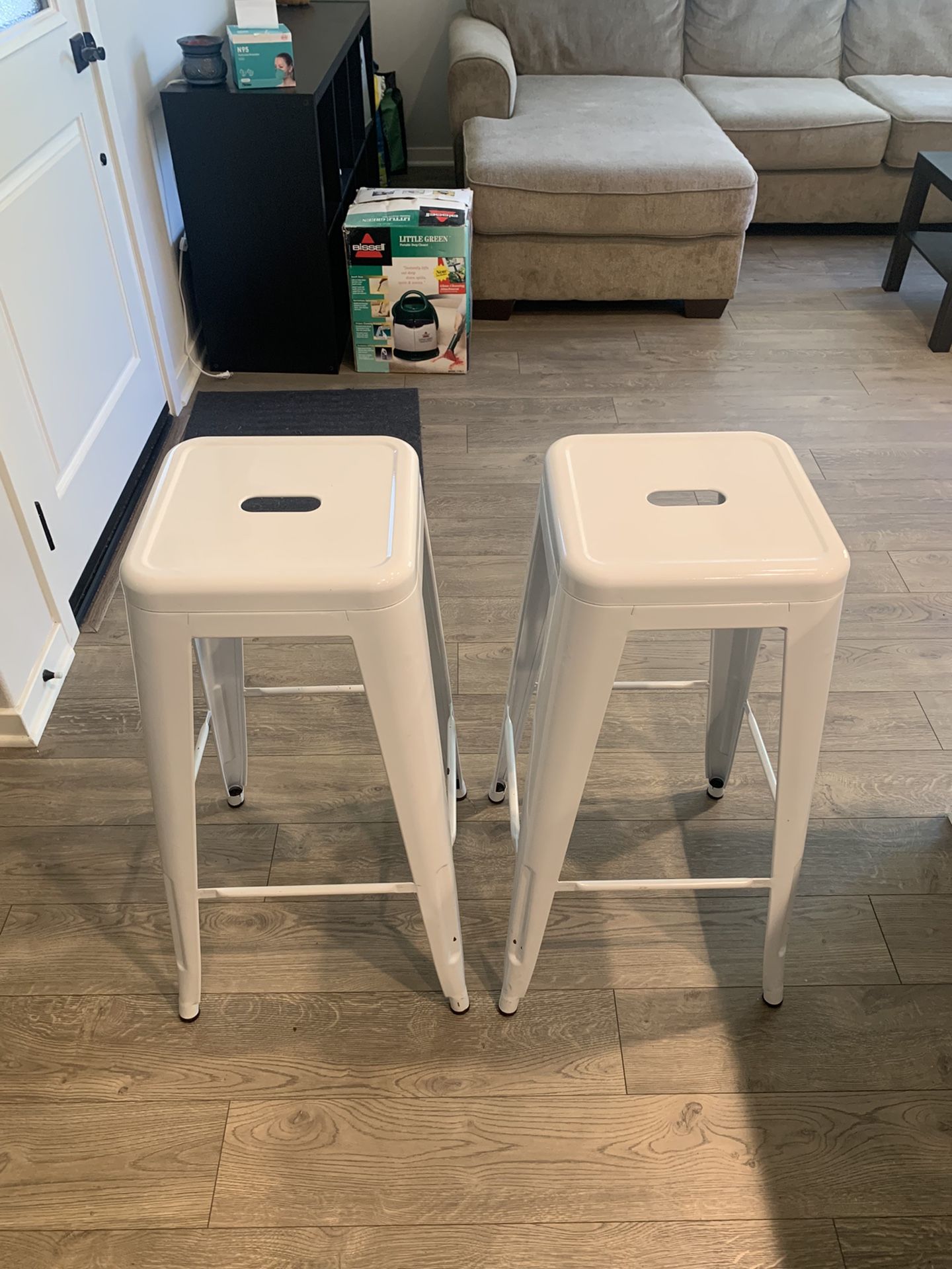 2 white metal kitchen stools, 2 for $70 or 1 for $40. Message me if you have any questions!