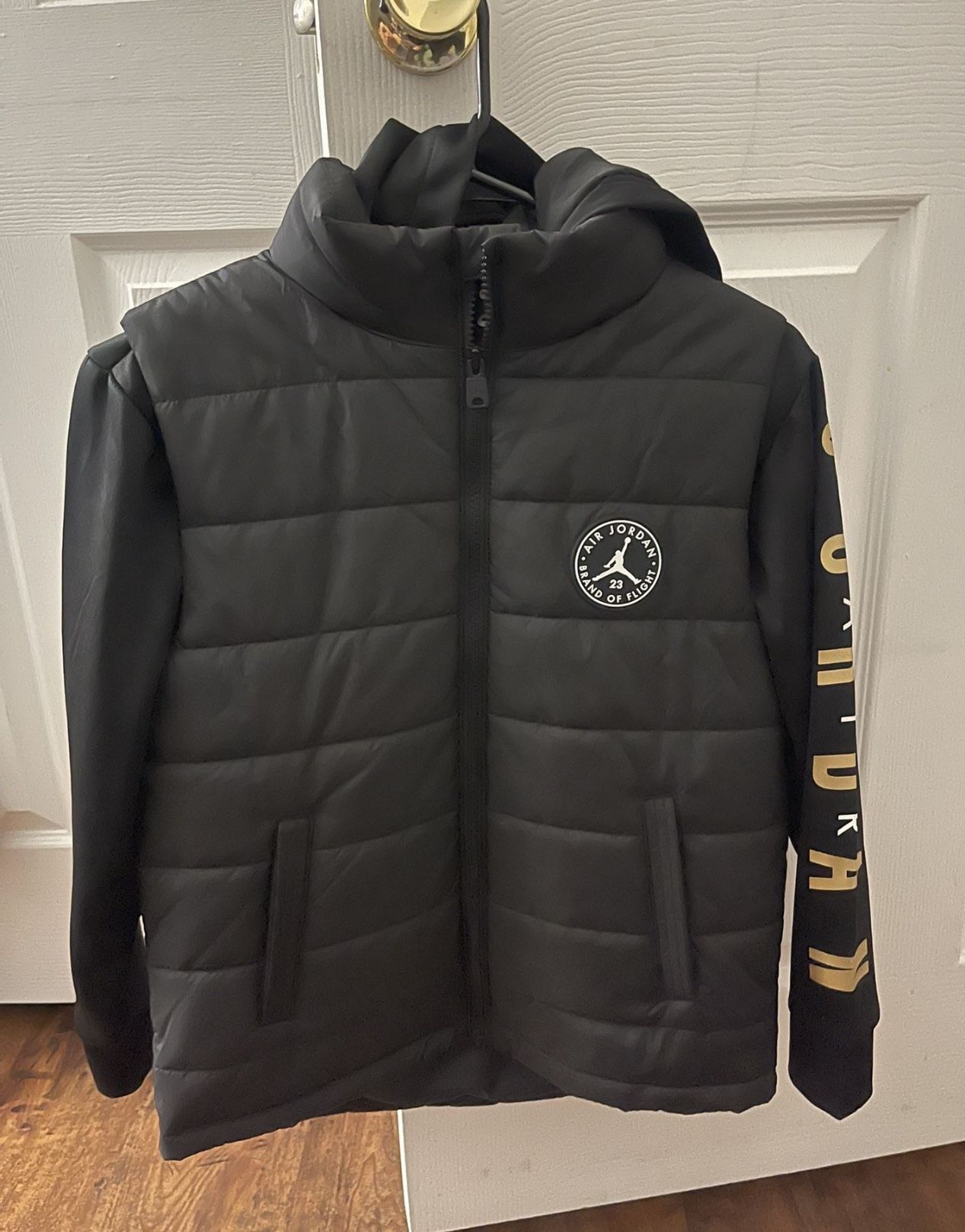 Jordan youth medium jacket in excellent condition. Never worn or barely worn — no stains, rips, or damage. Puffer-style body with soft sleeves. Very warm and perfect for winter. Smoke-free home. $40 local pickup Swedesboro or Wilmington