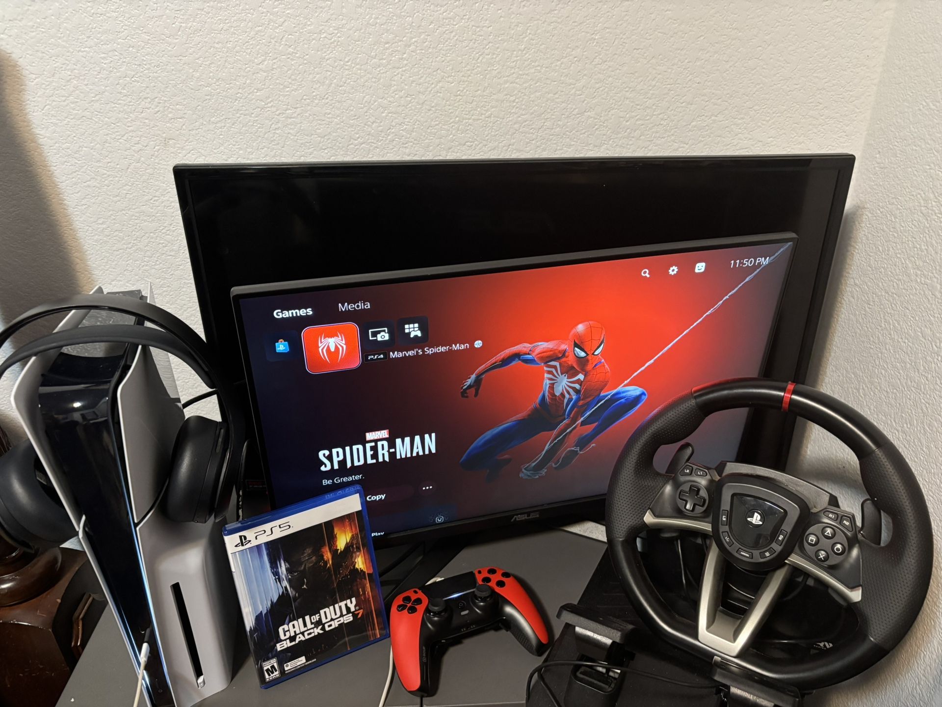 includes PlayStation 5 • 27” ASUS Monitor • Wireless Sony PS5 Headset • RWA Steering Wheel & Pedals • SCUF PS5 Controller (≈ $240 retail) • Call of Duty: Black Ops 7 • Marvel’s Spider-Man (PS4) Price: $450 (FIRM) NO NEGOTIATING NOR OFFERS BEST PRICE YOU WILL FIND. Pickup: Los Banos Cash or Zelle No trades. Serious buyers only.