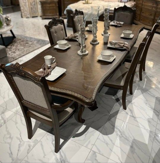 CHARMOND BROWN DINING ROOM SET7-PIECE (TABLE+ 6 SIDE CHAIRS