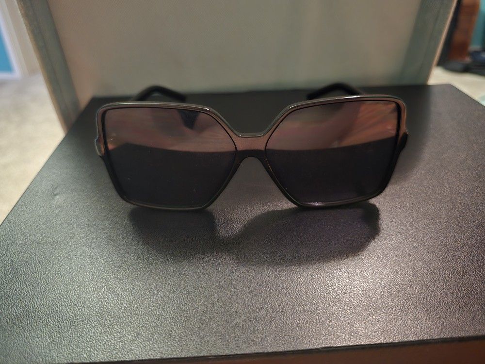 Black lenses, black plastic frames, metal hinges. Oversized fit. Like new. Cash only.