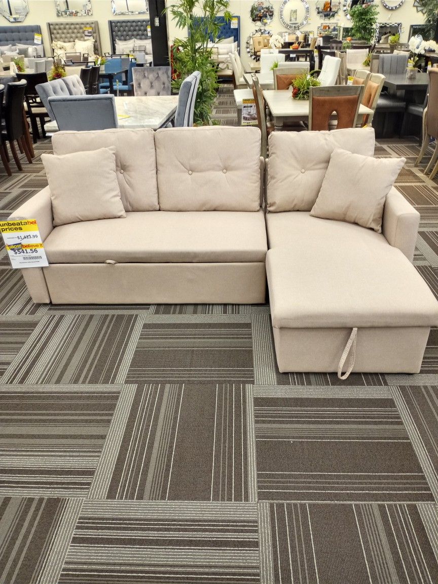 Linen Beige LAF Sofa Bed with Bed RAF Chaise w/ Storage