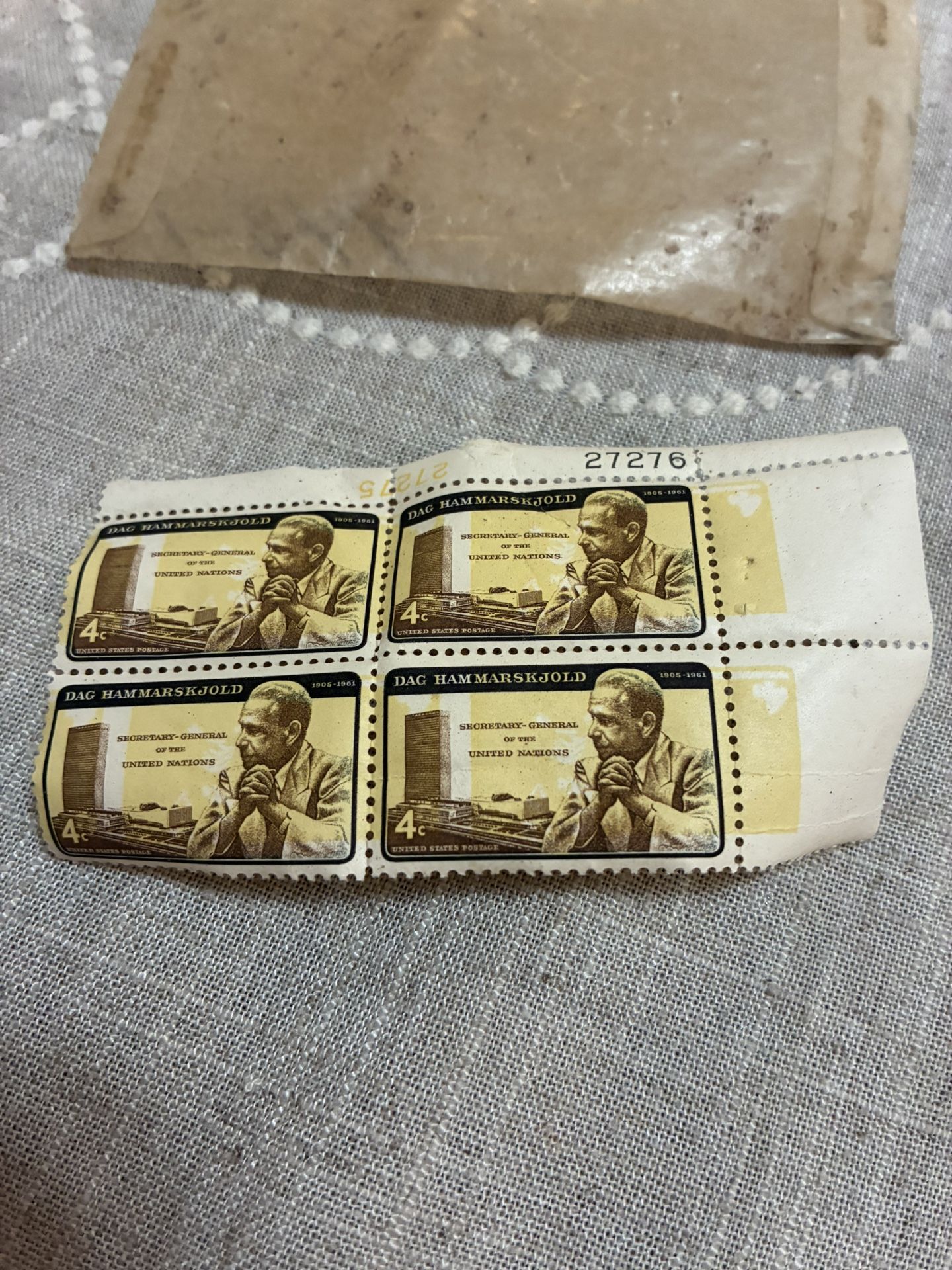 US STAMP #27276 block of 4, 4¢ DAG HAMMARSKJOLD SECRETARY GENERAL