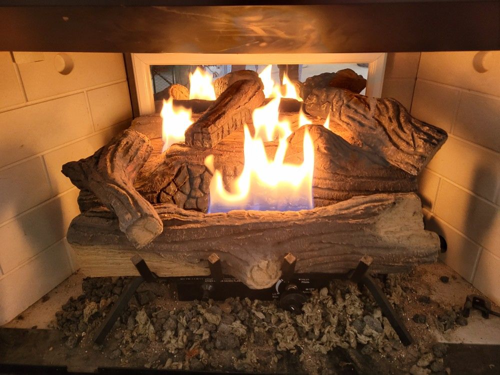 High Quality Realistic Natural Gas Fireplace Logs. Easy push button ignition with pilot light Complete with gas line hose connection. We paid for a good set but found we rarely used it because our chimney didn't draft good enough. No heater