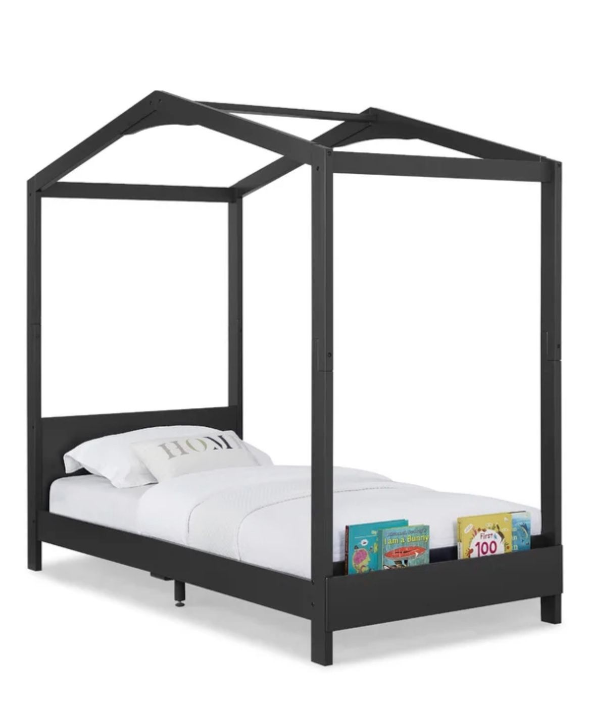 Dark solid wood platform bed with shelves. Purchased about a year ago in great conditions. It also comes with a Dreamcloud premier mattress. The bed is dissembled and free for pickup with the mattress.