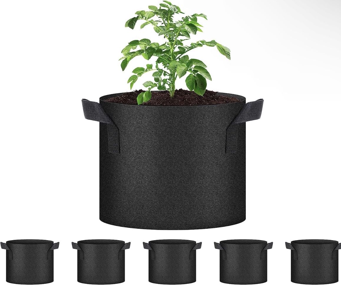 5-Pack 5-15Gallon Nonwoven Grow Bags, Aeration Fabric Pots with Handles, Suitable for Garden Fruits, Vegetables and Flowers, Black