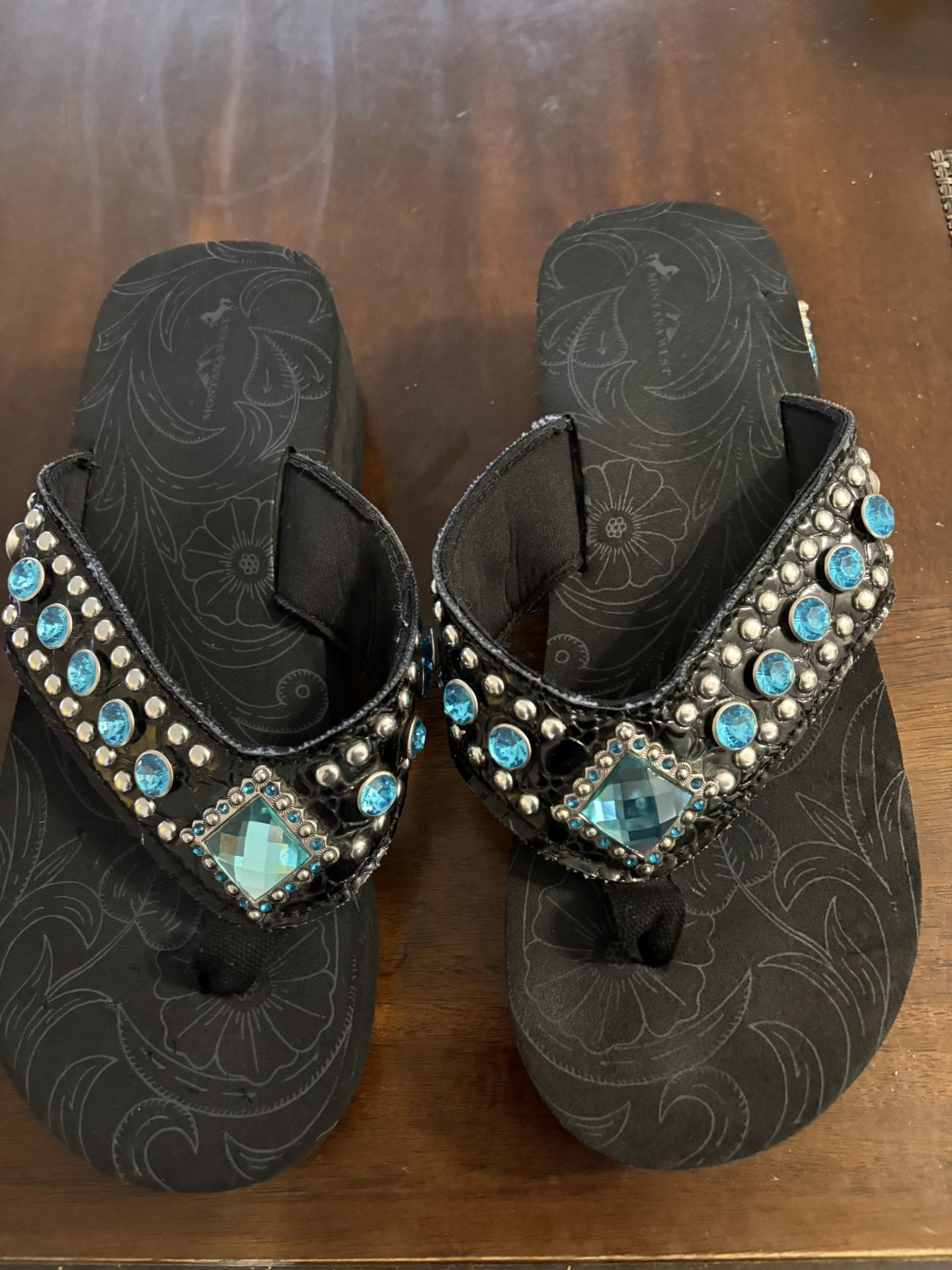 MONTANA WEST BLACK BLUE STONE & BEADED FLIP FLOPS
