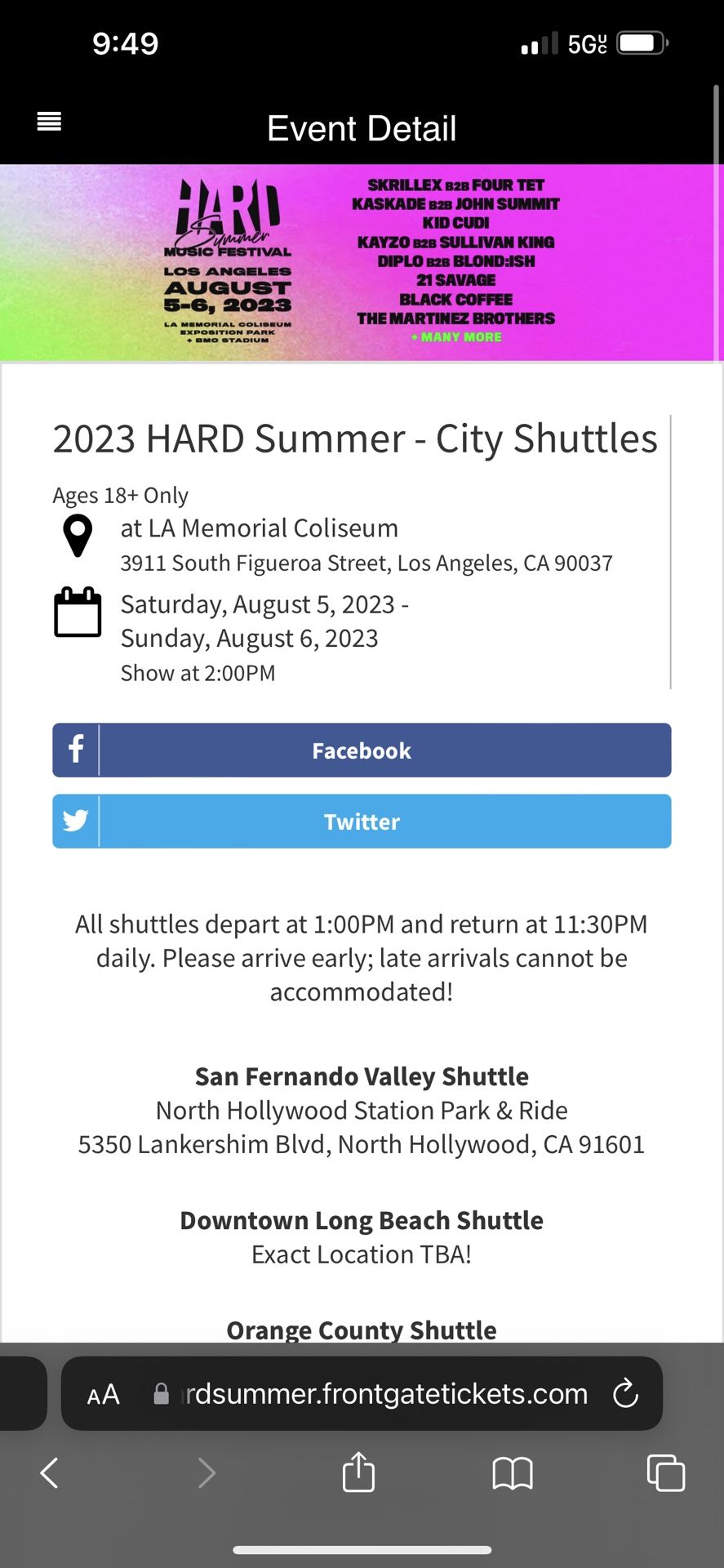 Hi I’m looking to buy a shuttle ticket for Sunday for Hard Summer in Fullerton. Please message me if you have!