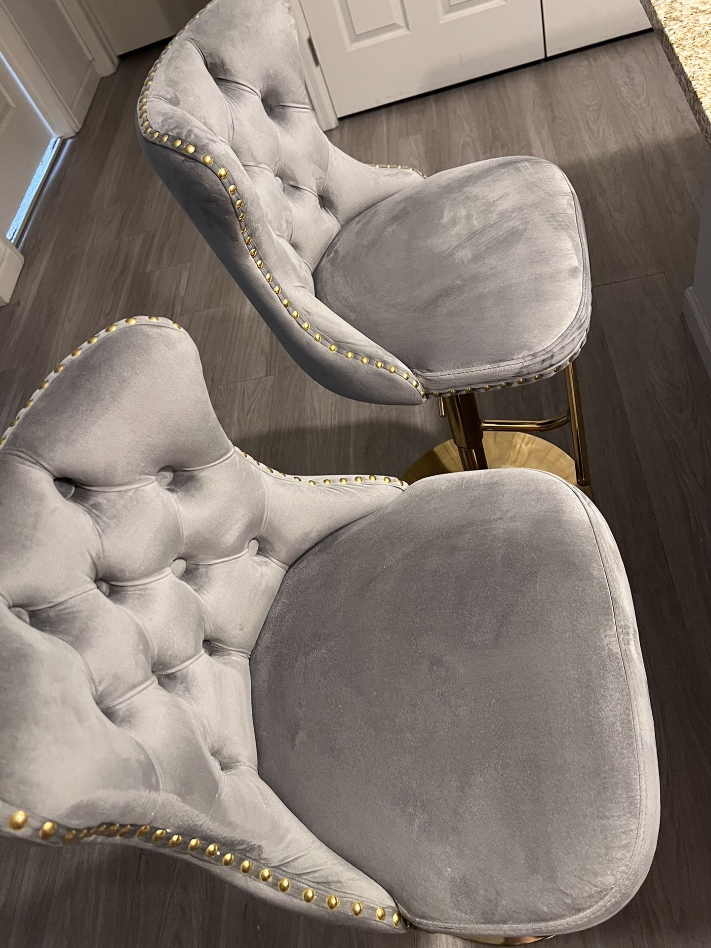 Velvet Bar Stools Set of 2 Gray Modern Swivel Bar Chairs