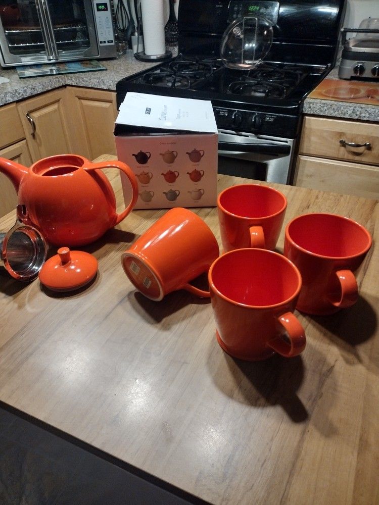 4 coffee ☕ mugs 12oz. Paprika color. $32.00 1 Tea Pot with infuser 45oz. Paprika color $30.00 Only $62.00 for set.