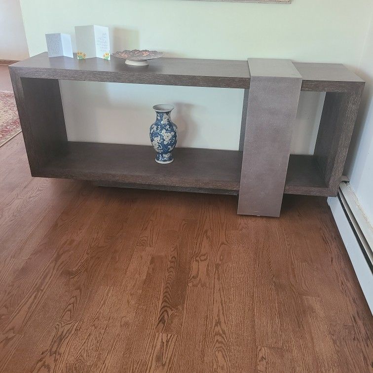 Selling my Bernhardt Linea Console Table (72") in like-new condition. Beautiful, clean-lined piece with a high-end modern aesthetic. Finish: Cerused Greige oak veneer with textured graphite metal accents Size: 72" W × 19" D × 33" H Condition: Excellent – no scratches, dents, or damage. Gently used in a pet-free, smoke-free home. Features: Sleek and minimalist design, includes lower shelf for storage/display Original Price: $3,300+ at designer furniture retailers Selling for: $600 Perfect for entryways, behind sofas, or along long walls Must be picked up Can be purchased with the matching California king bed, dresser, mirror and nightstand