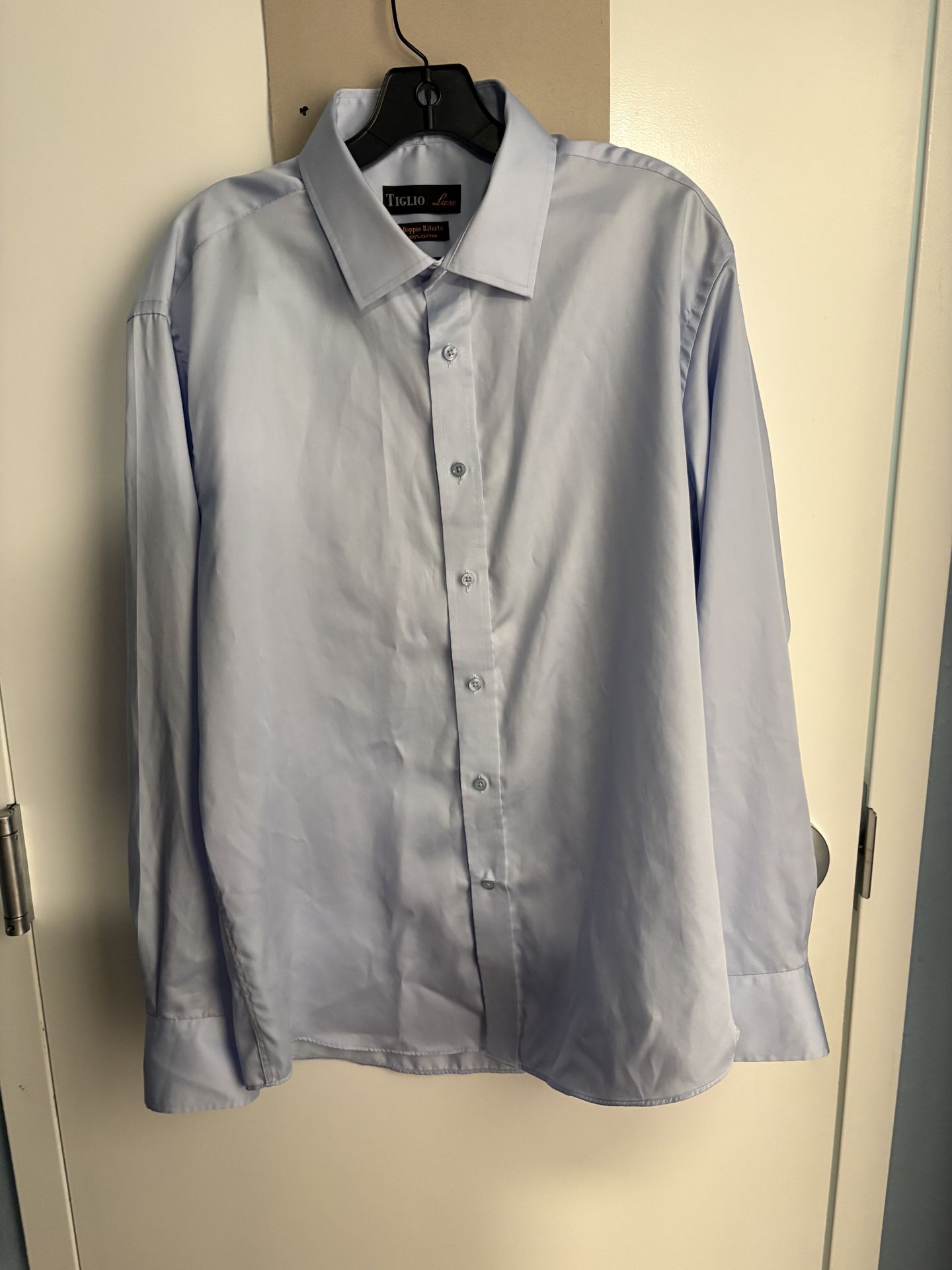 Tiglio Luxe Doppio Ritorto Dress Shirt Men's 17 1/2 34/35 Light Blue Cotton