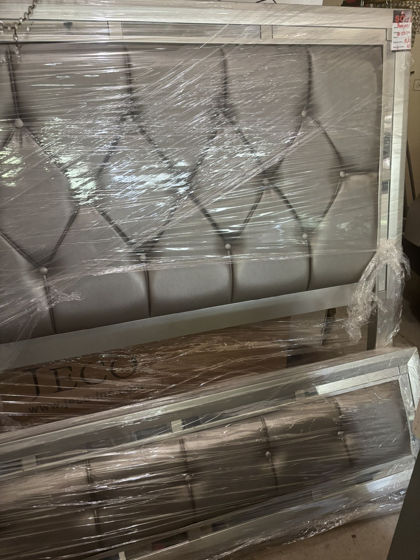 This upholstered platform bed with headboard can offer you luxury sleeping experience The bed is NEW the color is silver/ gray 175$