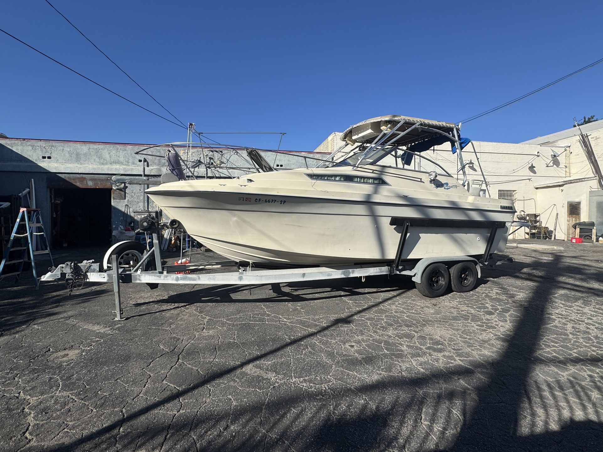 This boat total restored new rebuilt engine Volvo Penta 5.7L with heater exchange and out drive wit 280 dual pro gas tank gray tank toilet refrigerator inverter all new . Too many to list you got to see to believe it, galvanize dual axle trailers with new tires