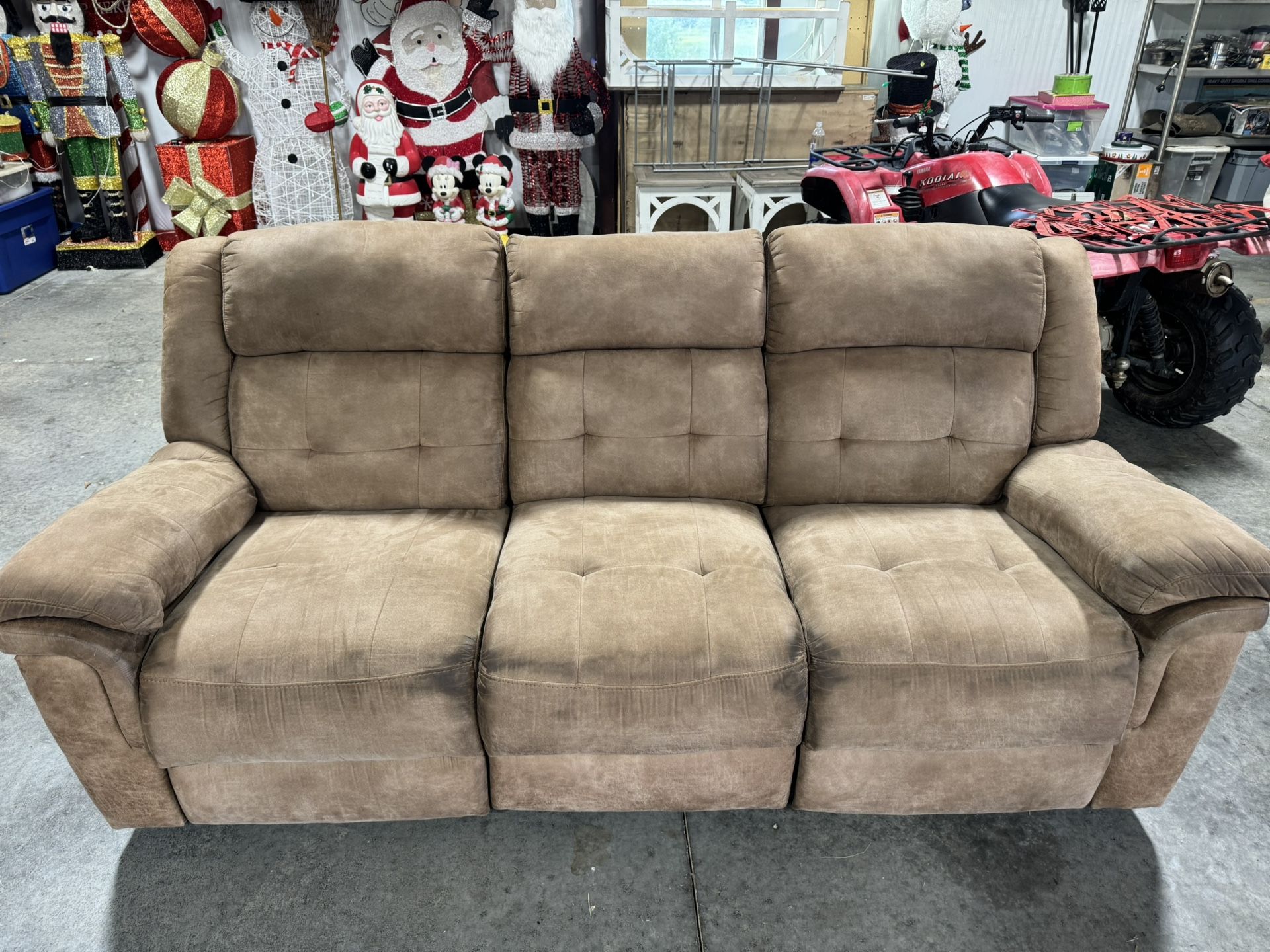 •3 seated couch •foldable arms with storage •foldable mid section w/ cup holders and charging ports/regular outlets •outside chairs recline •will deliver for $50 fee