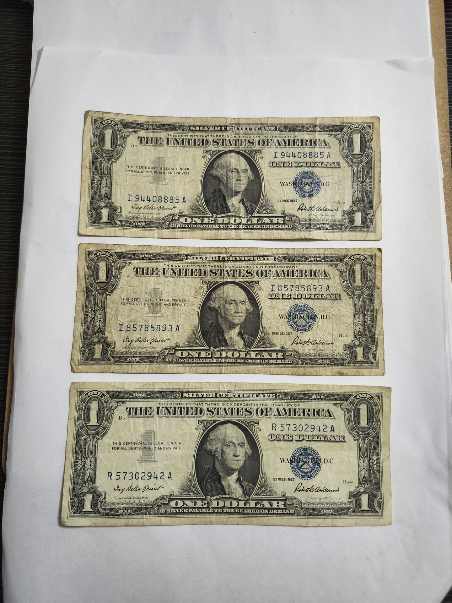3 - 1957 One Dollar Notes (Blue Seal) $15 for all 3